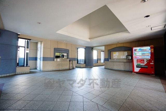 落ち着いた雰囲気の広々としたロビーです。自販機も設置されています。
