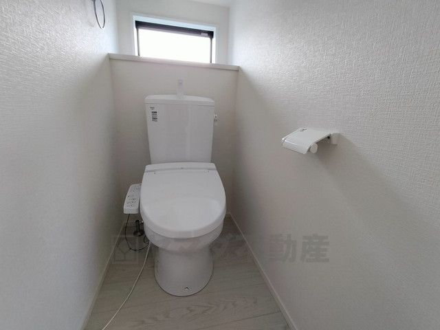 温水洗浄機付トイレです。節水機能もあるので、安心して使えますね。もちろん、1階2階の2ヶ所にトイレがあるので、忙しい朝にもゆとりができますね。
