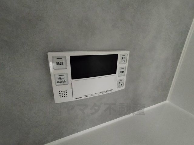 キッチン横からお湯張り、追い炊き、足し湯がボタン一つで楽々操作できる給湯機リモコンです。忙しい夕飯準備の時間帯に重宝しますね。