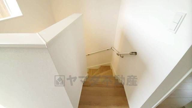 手摺付き階段部分です。勾配も緩やかに設計されており、安全性も重視。