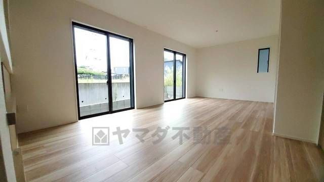 大きな窓のあるリビングは、陽光あふれる明るい空間です。居心地良く、ご家族皆がゆったり寛げる憩いの空間となりそうです。