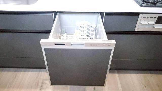 食事の後の手間を解消する食器洗い乾燥機付。冬場の洗い物で手荒れの悩みもなくなります。手洗いよりも節約できて便利。