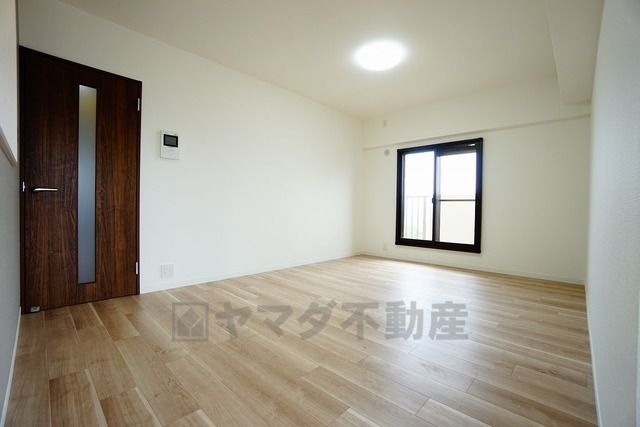明るい洋室です。ナチュラル色のフローリングで開放的な優しい雰囲気になっています^^ベッドや机、TVを置いてもゆとりのある広さです。