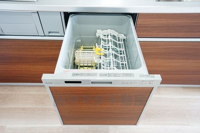 食事の後の手間を解消する食器洗い乾燥機付。冬場の洗い物で手荒れの悩みもなくなります。手洗いよりも節約できて便利。