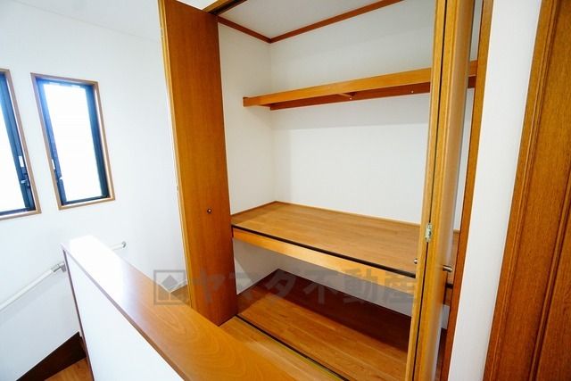 2階の廊下にも収納を確保。各居室に入りきれなかった荷物や、2階で使用する日用品のストック置き場に便利です。