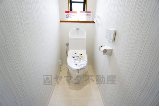 温水洗浄機付トイレです。節水機能もあるので、安心して使えますね。もちろん、1階2階の2ヶ所にトイレがあるので、忙しい朝にもゆとりができますね。