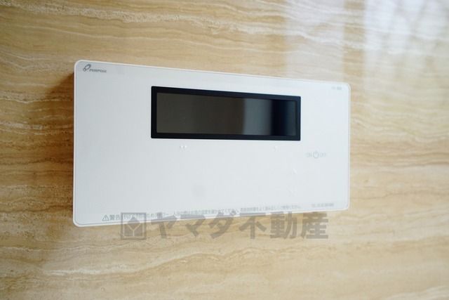 キッチン横からお湯張り、追い炊き、足し湯がボタン一つで楽々操作できる給湯機リモコンです。忙しい夕飯準備の時間帯に重宝しますね。