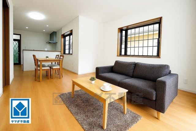大きな窓のあるリビングは、陽光あふれる明るい空間です。居心地良く、ご家族皆がゆったり寛げる憩いの空間となりそうです。