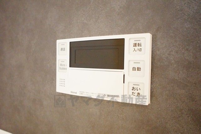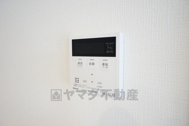 キッチン横からお湯張り、追い炊き、足し湯がボタン一つで楽々操作できる給湯機リモコンです。忙しい夕飯準備の時間帯に重宝しますね。