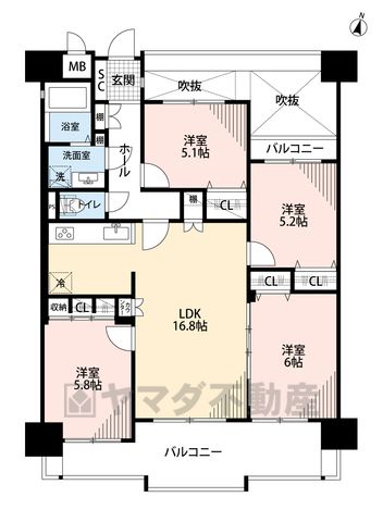 LDK16.8畳、洋5.1畳、洋5.2畳、洋5.8畳、洋6畳 |