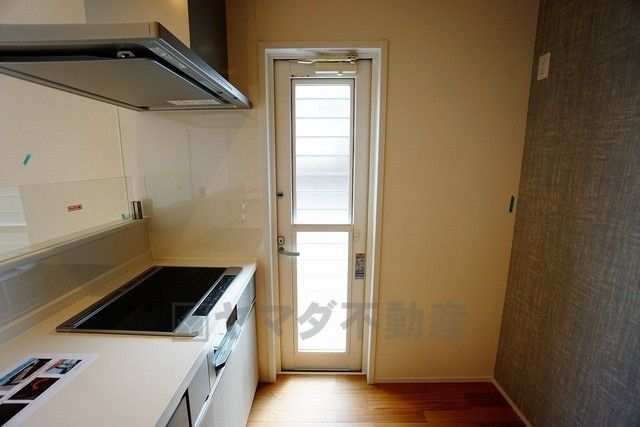 同仕様写真。勝手口付きキッチン。においがこもりやすいキッチンの換気にも役立ちます。ごみの仮置きにもなり、便利です^^