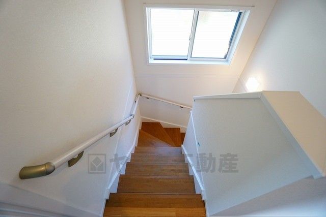 同仕様写真。小さなお子様やご高齢の方でも安心できる、手すり付き階段。段差も低めで設定されており、安全性にも優れています。