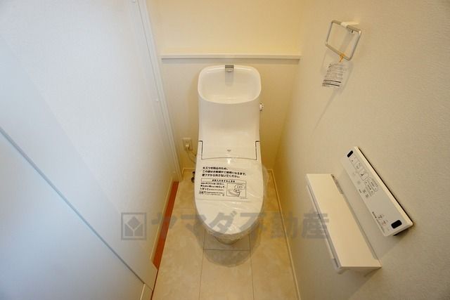 同仕様写真。温水洗浄機付トイレです。節水機能もあるので、安心して使えますね。もちろん、1階2階の2ヶ所にトイレがあるので、忙しい朝にもゆとりができますね。