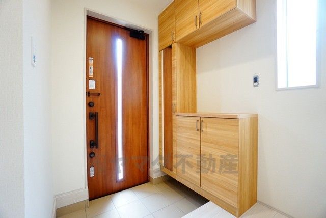 家の顔となる玄関扉がかっこいいと、たくさんの人を招き入れたくなりますね^^奥まって設置されており、雨にも濡れにくくなっています。