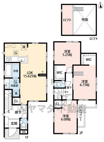 LDK15.6畳(1F)、洋5.2畳(2F)、洋6畳(2F)、洋6.7畳(2F) |