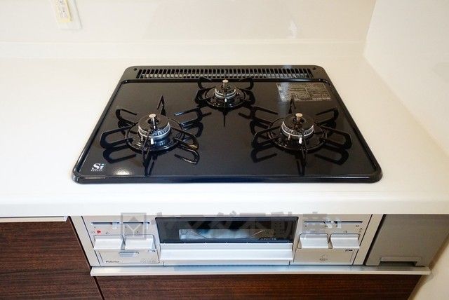 同時にたくさんの料理が調理できる3口コンロ。長時間熱を通しておきたい煮込み料理を作りながら、炒め物など同時進行で進められます。