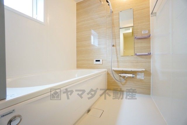 浴室暖房乾燥機付き。天候に左右されず、いつでも好きなときに洗濯物を干せるので、仕事や家事で忙しい方に重宝します。