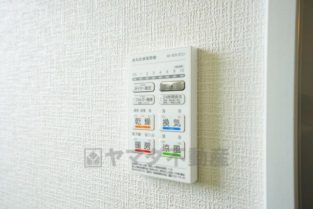 雨の日の洗濯も安心できる浴室暖房乾燥機付き浴室。リモコンで操作もボタン1つで簡単。