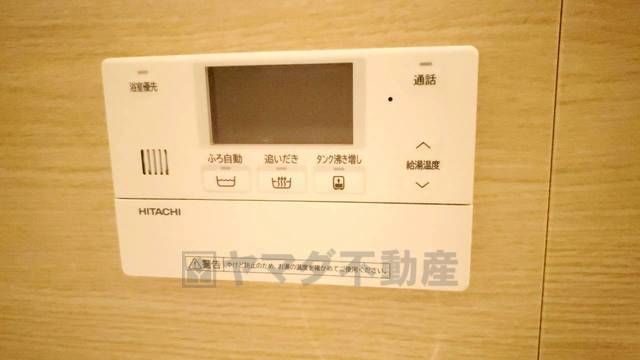 キッチン横からお湯張り、追い炊き、足し湯がボタン一つで楽々操作できる給湯機リモコンです。忙しい夕飯準備の時間帯に重宝しますね。