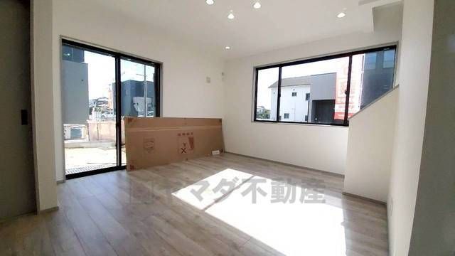 大きな窓のあるリビングは、陽光あふれる明るい空間です。居心地良く、ご家族皆がゆったり寛げる憩いの空間となりそうです。