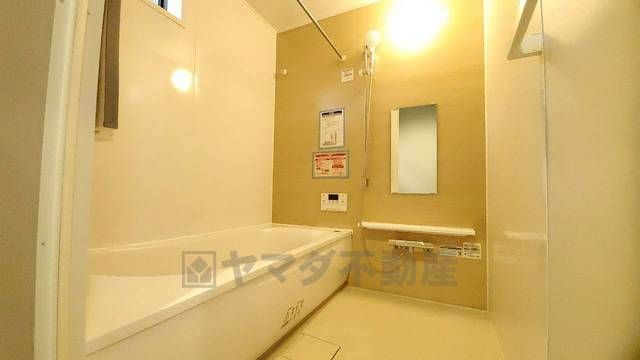 1日の疲れを癒すくつろぎのバスルーム。足を伸ばしてもゆったりと入れるサイズです。お子様と一緒にお風呂に入っても狭くないですね^^