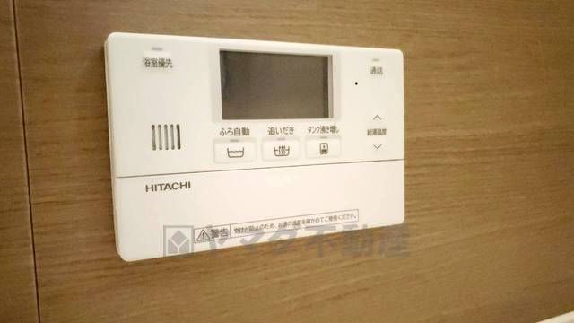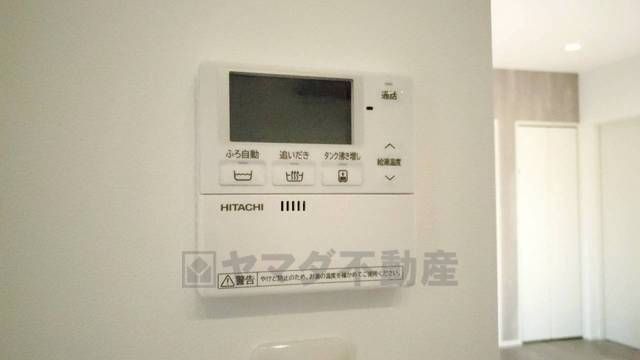 キッチン横からお湯張り、追い炊き、足し湯がボタン一つで楽々操作できる給湯機リモコンです。忙しい夕飯準備の時間帯に重宝しますね。