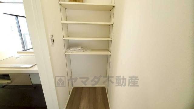 食品や飲料、調理器具を収納できるパントリー付き。週末に買いだめした食料を楽々収納できます。