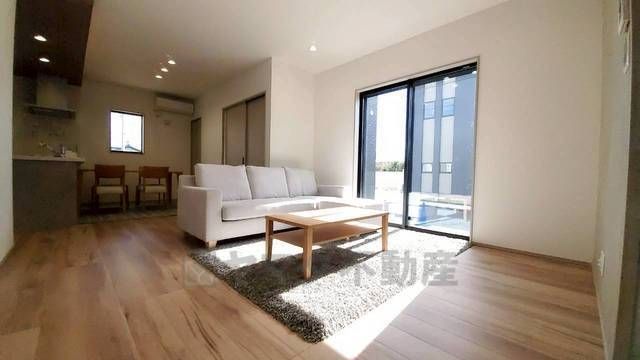 大きな窓のあるリビングは、陽光あふれる明るい空間です。居心地良く、ご家族皆がゆったり寛げる憩いの空間となりそうです。