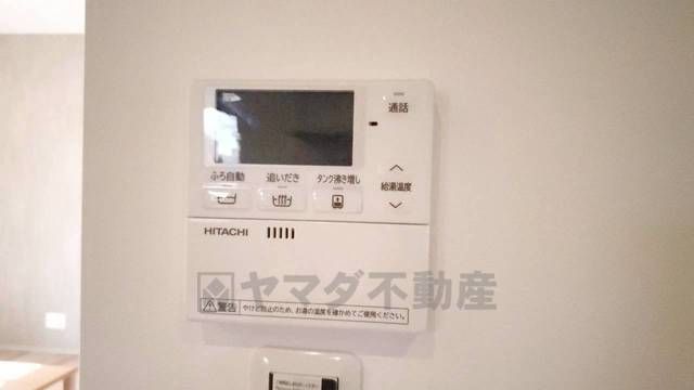 キッチン横からお湯張り、追い炊き、足し湯がボタン一つで楽々操作できる給湯機リモコンです。忙しい夕飯準備の時間帯に重宝しますね。