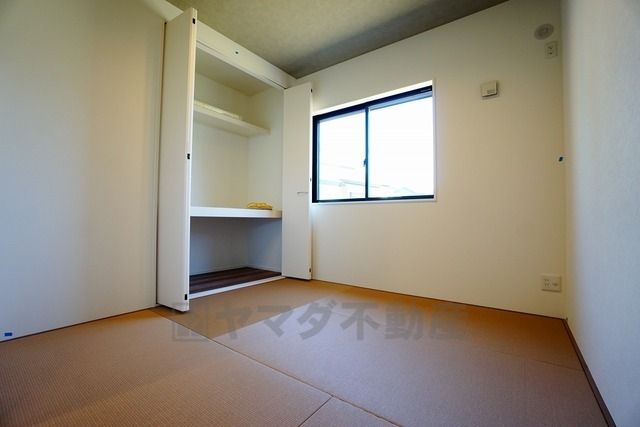 同仕様写真。リビングからの続き間として和室をご用意しました。普段はリビングとつなげて開放的なスペースとして、来客時には客間としてお使いいただけます。