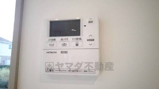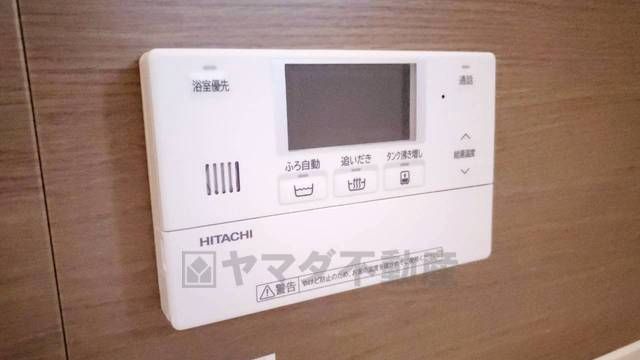 キッチン横からお湯張り、追い炊き、足し湯がボタン一つで楽々操作できる給湯機リモコンです。忙しい夕飯準備の時間帯に重宝しますね。