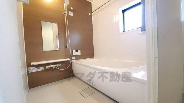 1日の疲れを癒すくつろぎのバスルーム。足を伸ばしてもゆったりと入れるサイズです。お子様と一緒にお風呂に入っても狭くないですね^^