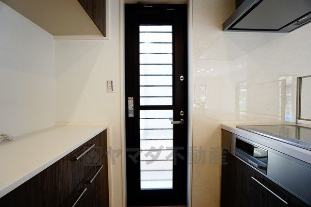 同仕様写真。勝手口付きキッチン。においがこもりやすいキッチンの換気にも役立ちます。ごみの仮置きにもなり、便利です^^