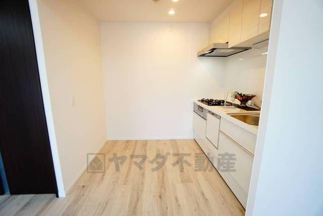 部屋の端に位置する壁付けキッチンは、デッドスペースができにくく、リビング・ダイニングを無駄なく広く活用できます。