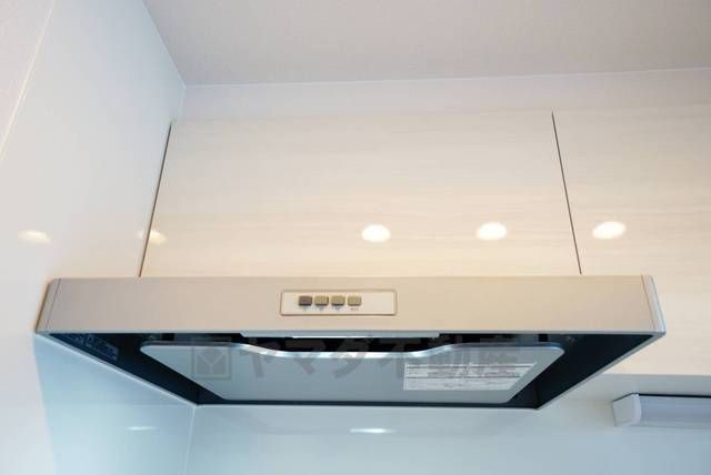 風量が弱・強と切替え可能なレンジフードが調理中の煙をしっかり吸い込みます。手元を照らすライト付きです。