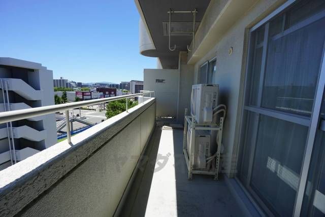 バルコニーからの眺望です。前面に遮るものがなく景色を一望できます。南東向きで、日当たりも良好。お洗濯物が良く乾きます。