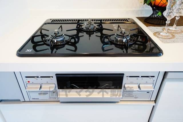 複数の調理を一度に行うことができる3口コンロ。効率よくお料理が出来ます。毎日のお料理も楽しくなりますね^^
