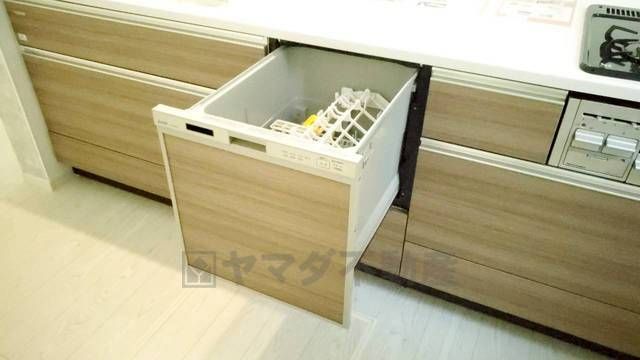 食事の後の手間を解消する食器洗い乾燥機付。冬場の洗い物で手荒れの悩みもなくなります。手洗いよりも節約できて便利。