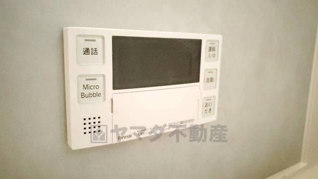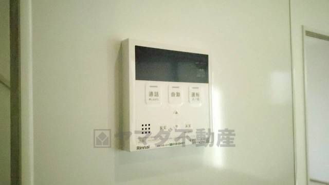 キッチン横からお湯張り、追い炊き、足し湯がボタン一つで楽々操作できる給湯機リモコンです。忙しい夕飯準備の時間帯に重宝しますね。