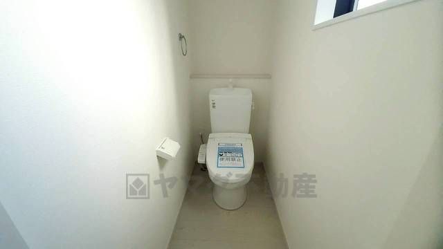 温水洗浄機付トイレです。節水機能もあるので、安心して使えますね。もちろん、1階2階の2ヶ所にトイレがあるので、忙しい朝にもゆとりができますね。