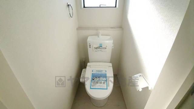 温水洗浄機付トイレです。節水機能もあるので、安心して使えますね。もちろん、1階2階の2ヶ所にトイレがあるので、忙しい朝にもゆとりができますね。