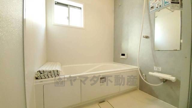 1日の疲れを癒すくつろぎのバスルーム。足を伸ばしてもゆったりと入れるサイズです。お子様と一緒にお風呂に入っても狭くないですね^^