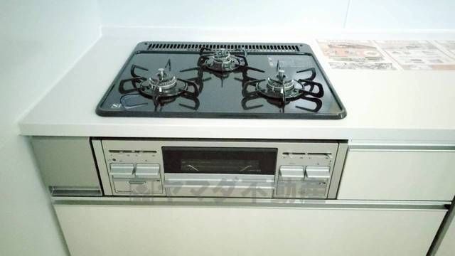 複数の調理を一度に行うことができる3口コンロ。効率よくお料理が出来ます。毎日のお料理も楽しくなりますね^^