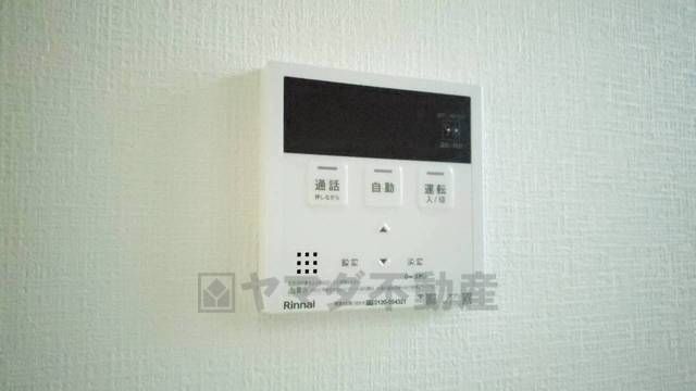 キッチン横からお湯張り、追い炊き、足し湯がボタン一つで楽々操作できる給湯機リモコンです。忙しい夕飯準備の時間帯に重宝しますね。