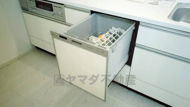 食事の後の手間を解消する食器洗い乾燥機付。冬場の洗い物で手荒れの悩みもなくなります。手洗いよりも節約できて便利。