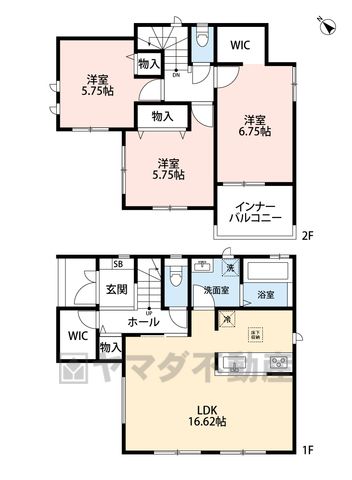 LDK16.6畳(1F)、洋5.7畳(2F)、洋6.7畳(2F) |