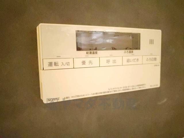 キッチン横からお湯張り、追い炊き、足し湯がボタン一つで楽々操作できる給湯機リモコンです。忙しい夕飯準備の時間帯に重宝しますね。