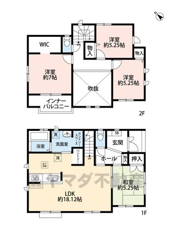 LDK18.1畳(1F)、和5.2畳(1F)、洋5.2畳(2F)、洋7畳(2F) |