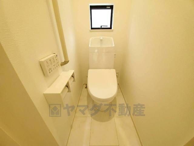 温水洗浄機付トイレです。節水機能もあるので、安心して使えますね。もちろん、1階2階の2ヶ所にトイレがあるので、忙しい朝にもゆとりができますね。