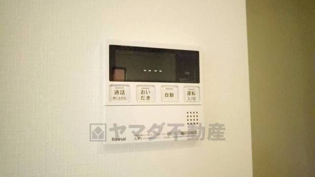 キッチン横からお湯張り、追い炊き、足し湯がボタン一つで楽々操作できる給湯機リモコンです。忙しい夕飯準備の時間帯に重宝しますね。